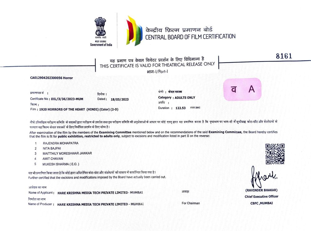 Hindi Name: 1920: होर्रोर्स ऑफ़ थे हार्ट