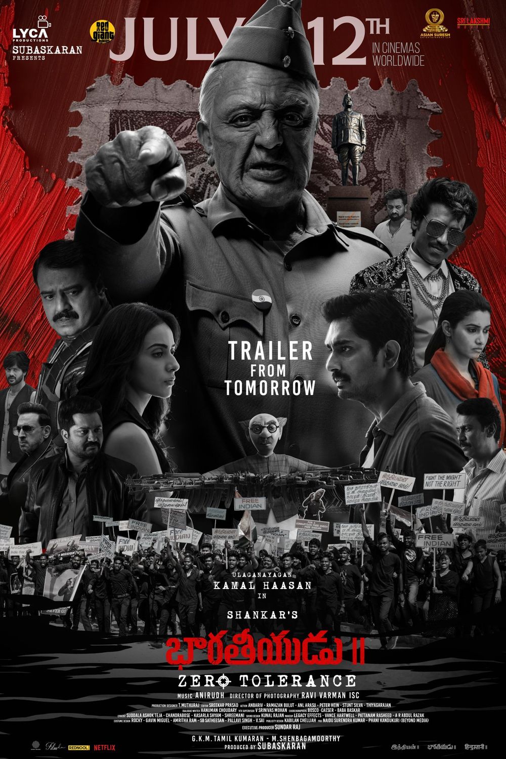 Cast: Kajal Aggarwal, Kamal Haasan, Priya Bhavani Shankar, Rakul Preet Singh, Siddharth Narayan