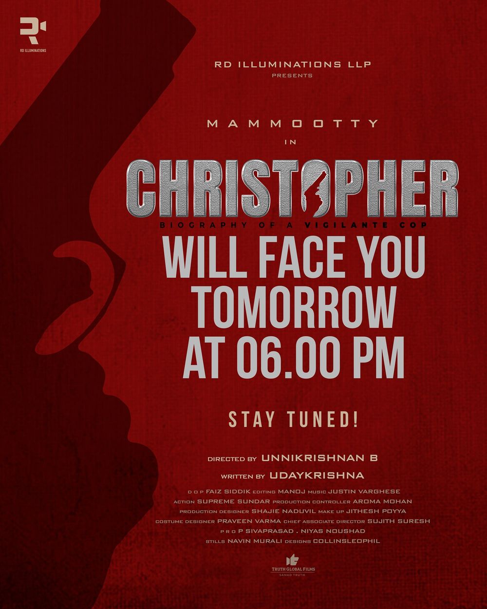 Crew: B Unnikrishnan (Director), Faiz Siddik (Director of Photography), Justin Varghese (Music Director), Collins Leophil (Publicity Designer)