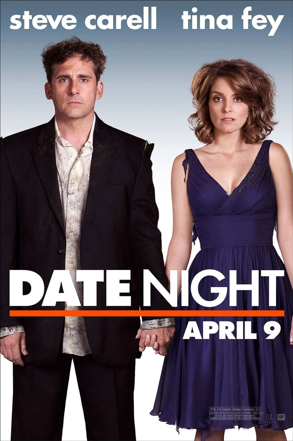 Claire (Tina Fey) and Phil Foster (Steve Carell) sleep peacefully in their bedroom, till they're jumped on by their kids, who demand breakfast. During breakfast, Claire gives her daughter a one-two-three warning, and is amazed that it still works. Phil makes the kids' lunches, but he's left all the drawers open, resulting in Claire almost tripping on them. Phil is a New Jersey tax lawyer and Clair is a realtor. When they get back home, they're totally bushed. Katie, their next-door neighbor, drops by. She tells them that she's here to baby-sit, as it's their Date Night. Though neither is really feeling up to it, they go to a restaurant for their date. They have potato skins and salmon (their usual) and watch other couples and analyze their actions, quite comically. Still their date is rather boring and they return home. Phil wants to fool around before sleeping, but Claire's already put in her retainer. He gets grossed out when she removes it and they spend yet another night without sex.