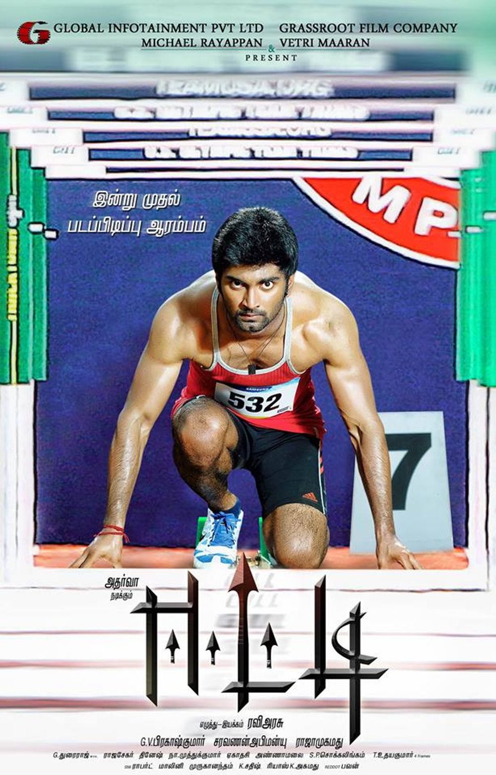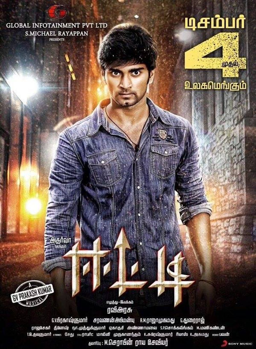 Crew: Ravi Arasu (Director), Saravanan Abimonyu (Director of Photography), GV Prakash Kumar (Music Director)