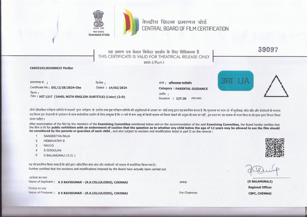 "Hit List," produced by filmmaker K.S. Ravikumar's production company.