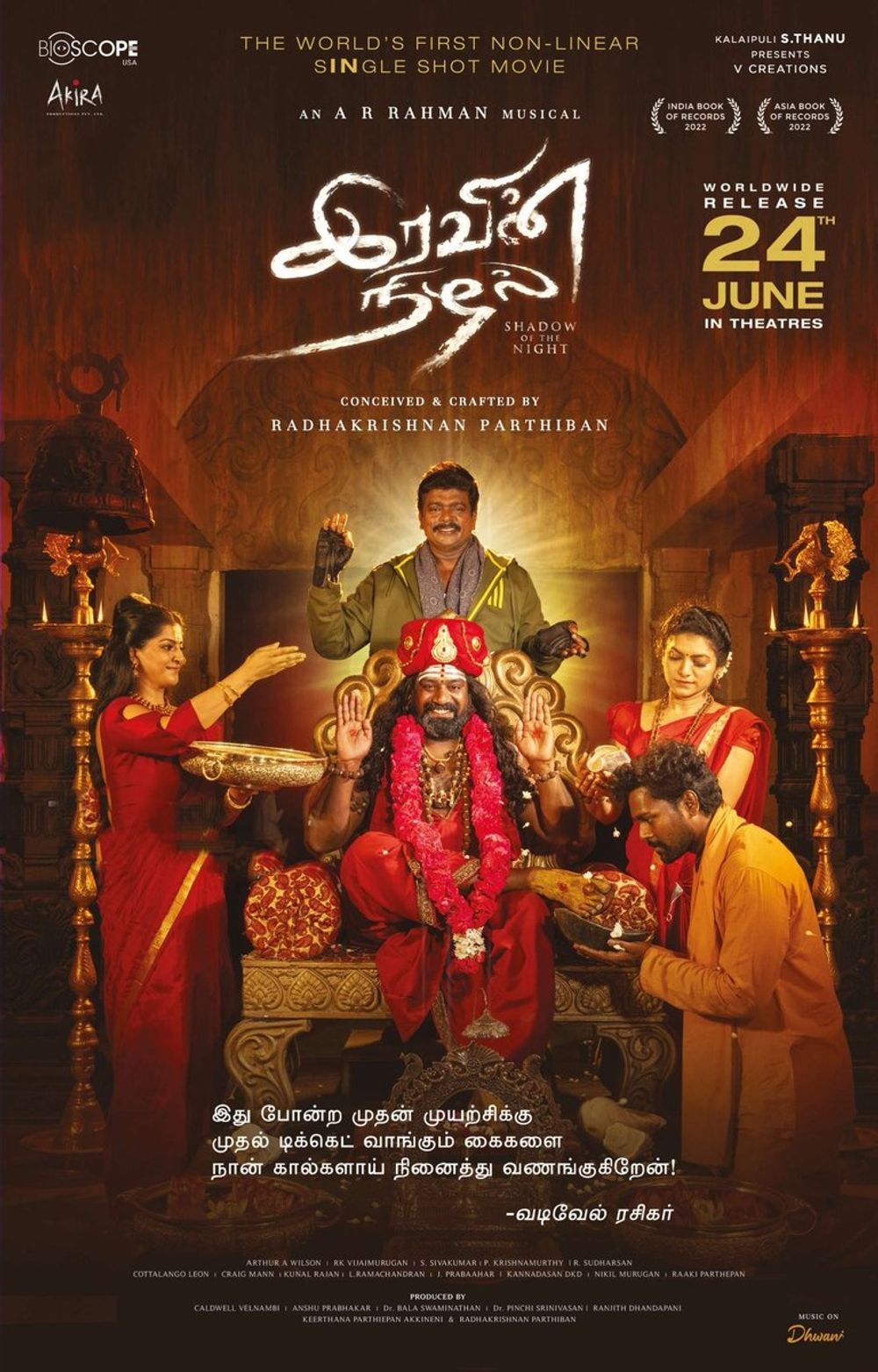 Crew: R Parthiban (Director), Arthur Wilson (Director of Photography), AR Rahman (Music Director), S Sivakumar (Audiographer)