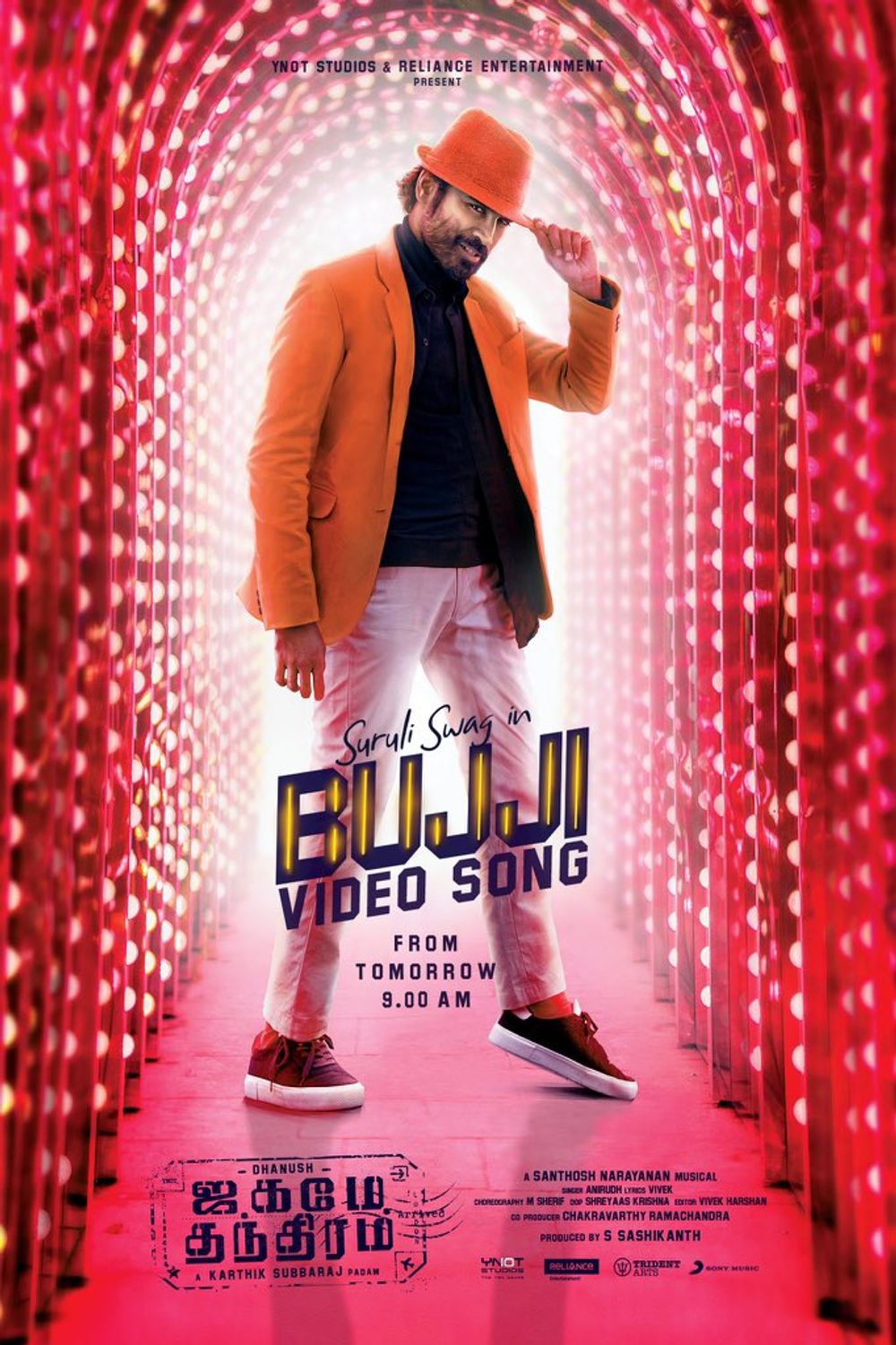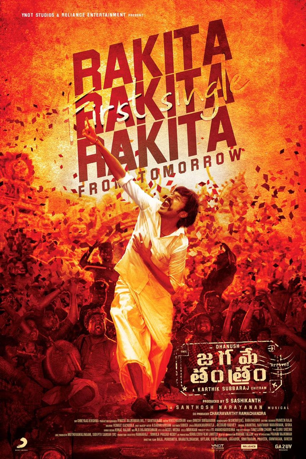 Crew: Karthik Subbaraj (Director), Shreyaas Krishna (Director of Photography), Santhosh Narayanan (Music Director), 24AM Studios (Publicity Designer), Tuney john (Publicity Designer)