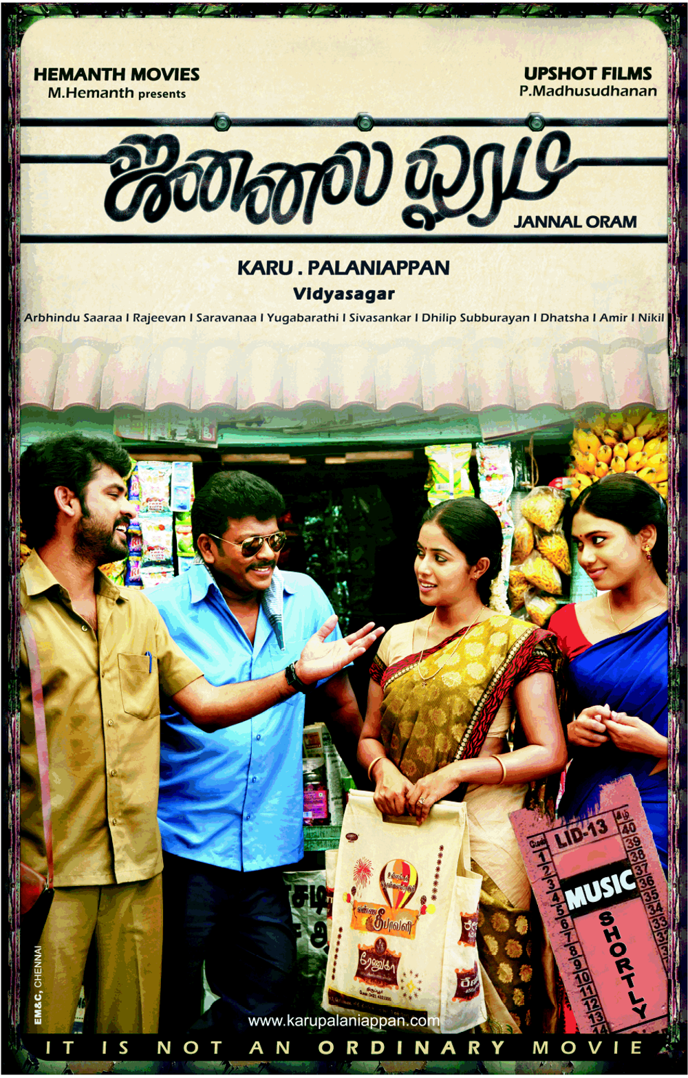 Crew: Karu Pazhaniappan (Director), Arbhindu Saaraa (Director of Photography), Vidyasagar (Music Director)