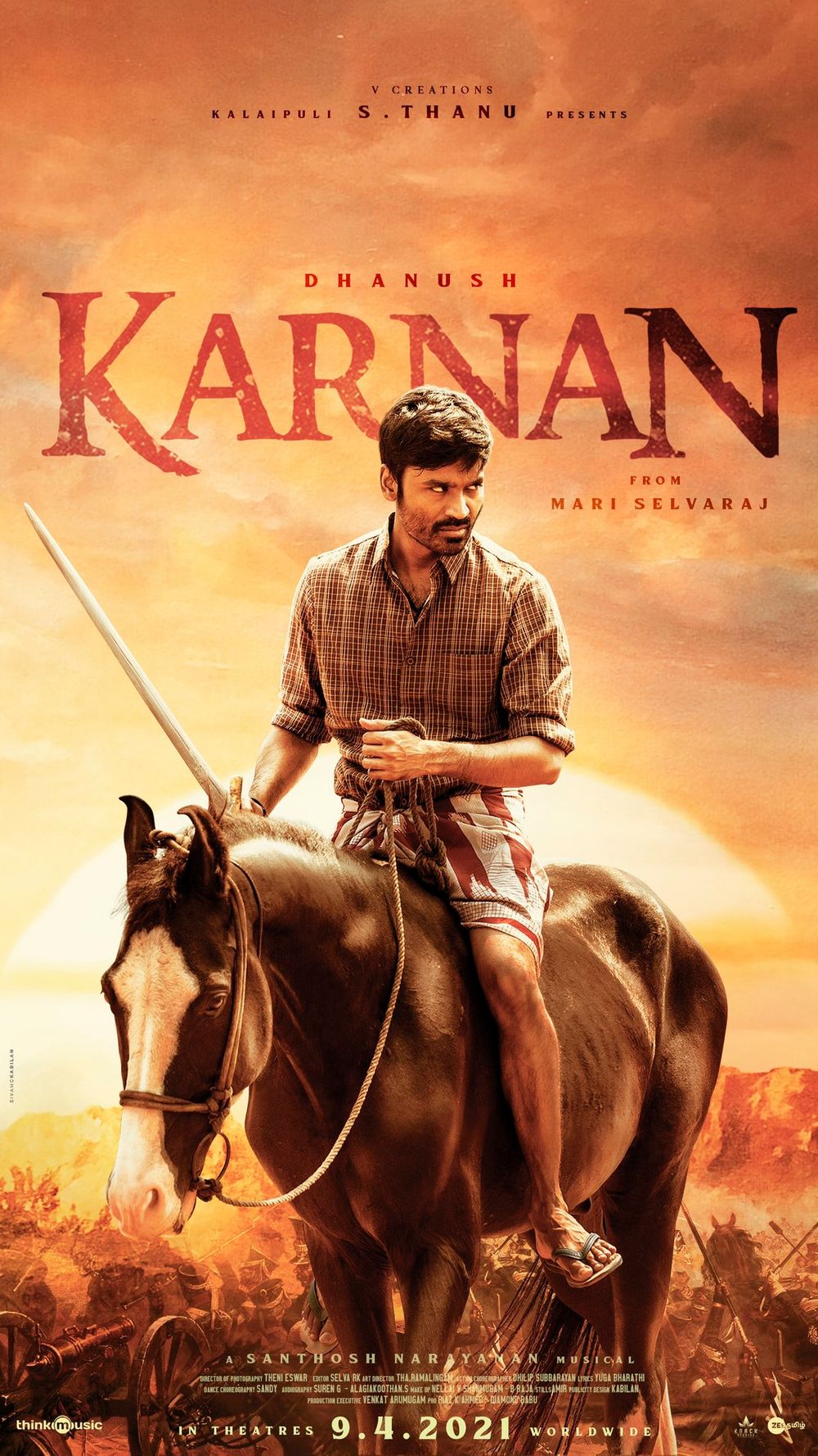 Crew: Mari Selvaraj (Director), Theni Eswar (Director of Photography), Santhosh Narayanan (Music Director), Kabilan Chellaih (Publicity Designer)