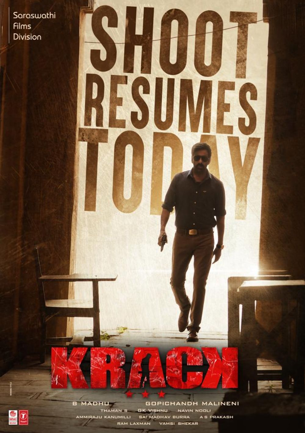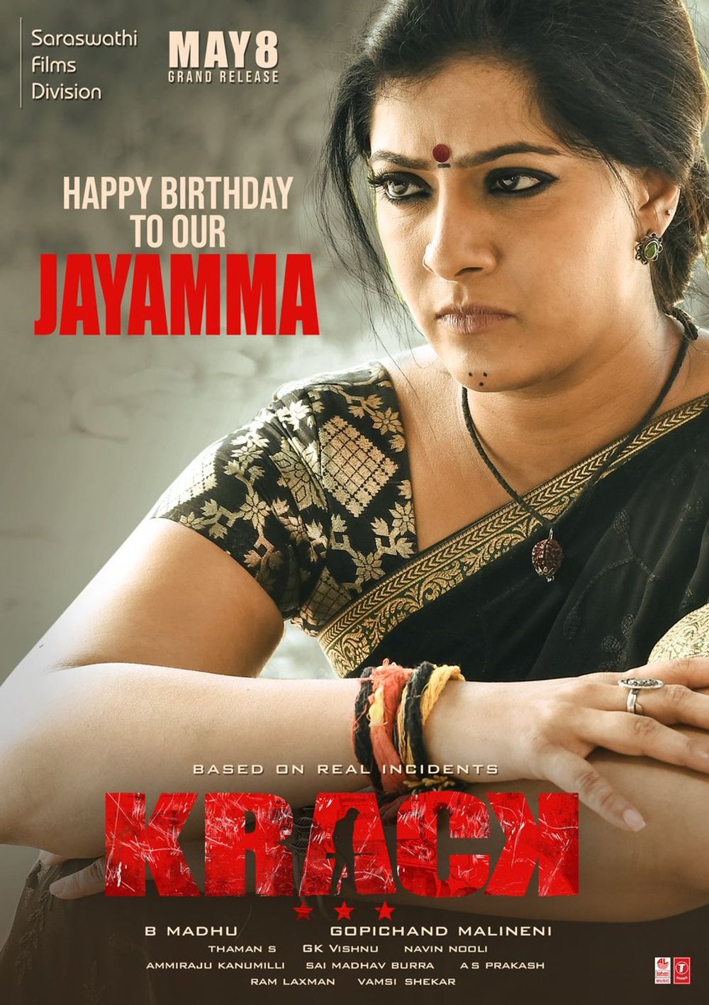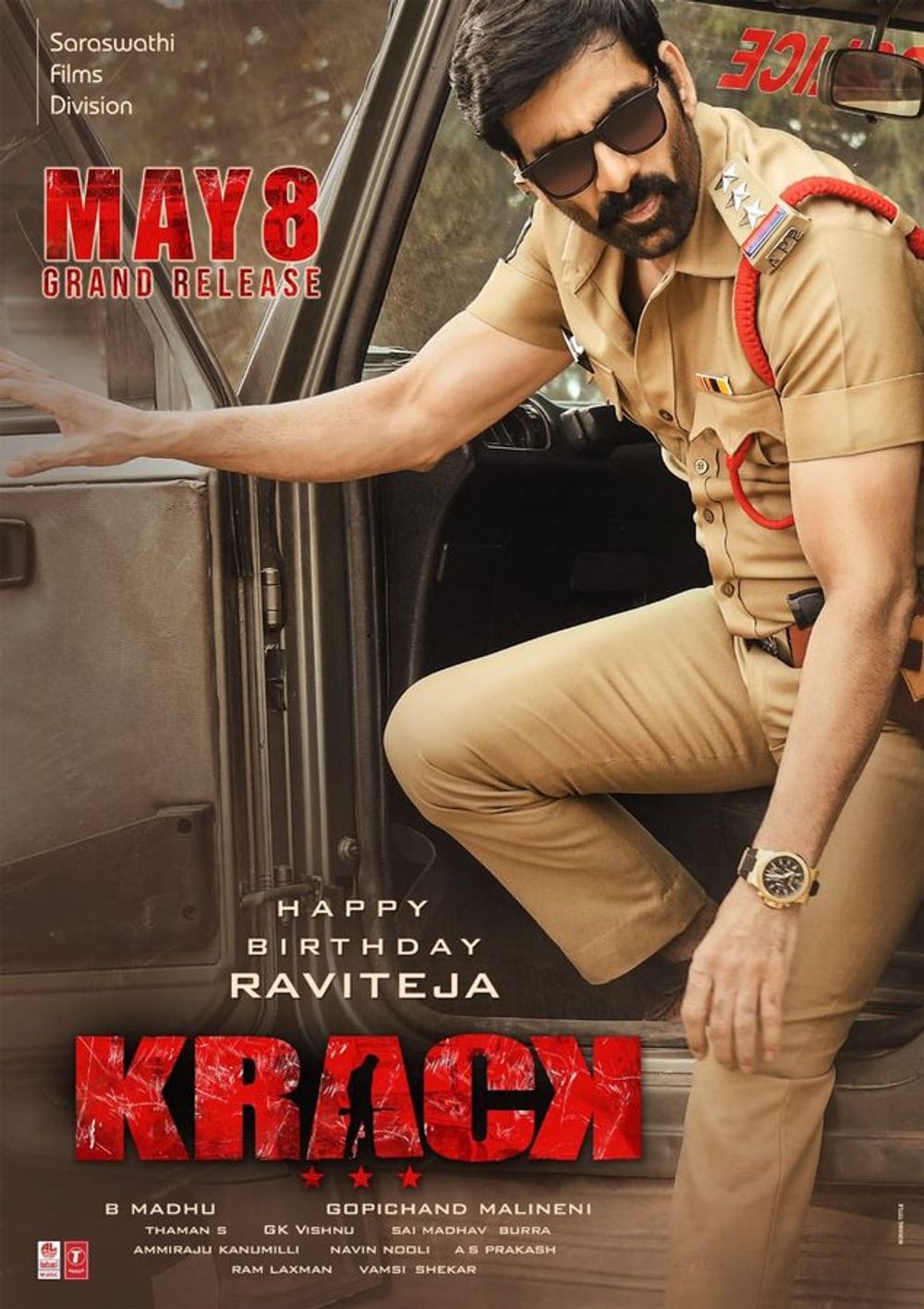 Crew: Gopichand Malineni (Director), GK Vishnu (Director of Photography), S Thaman (Music Director), Siva Kiran (Publicity Designer)