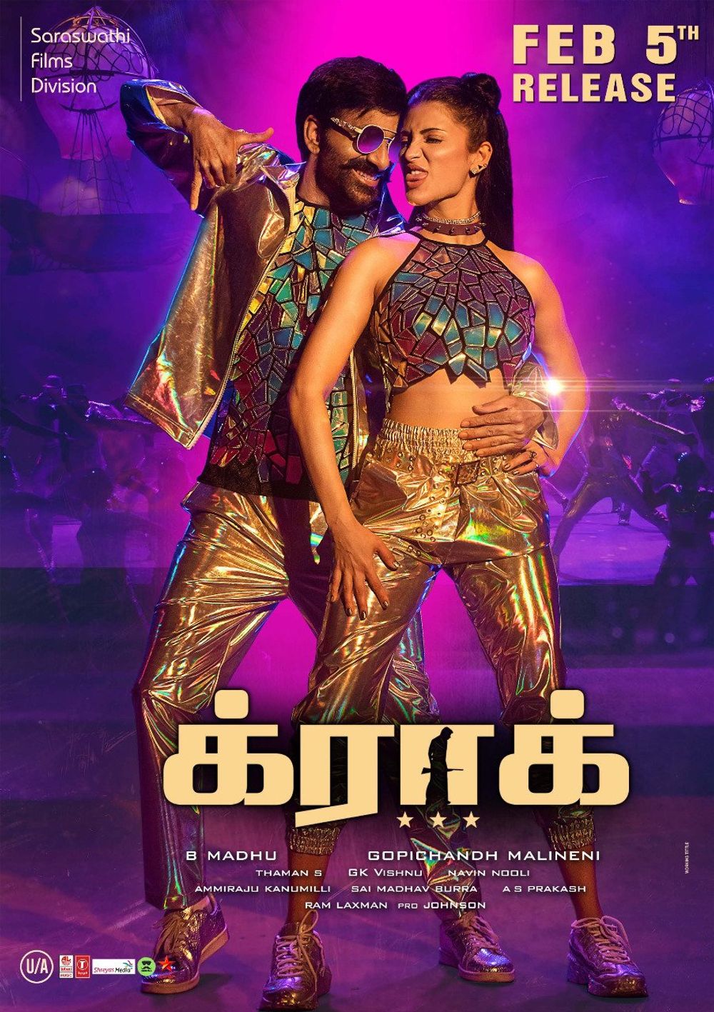 Crew: Gopichand Malineni (Director), GK Vishnu (Director of Photography), S Thaman (Music Director), Siva Kiran (Publicity Designer)