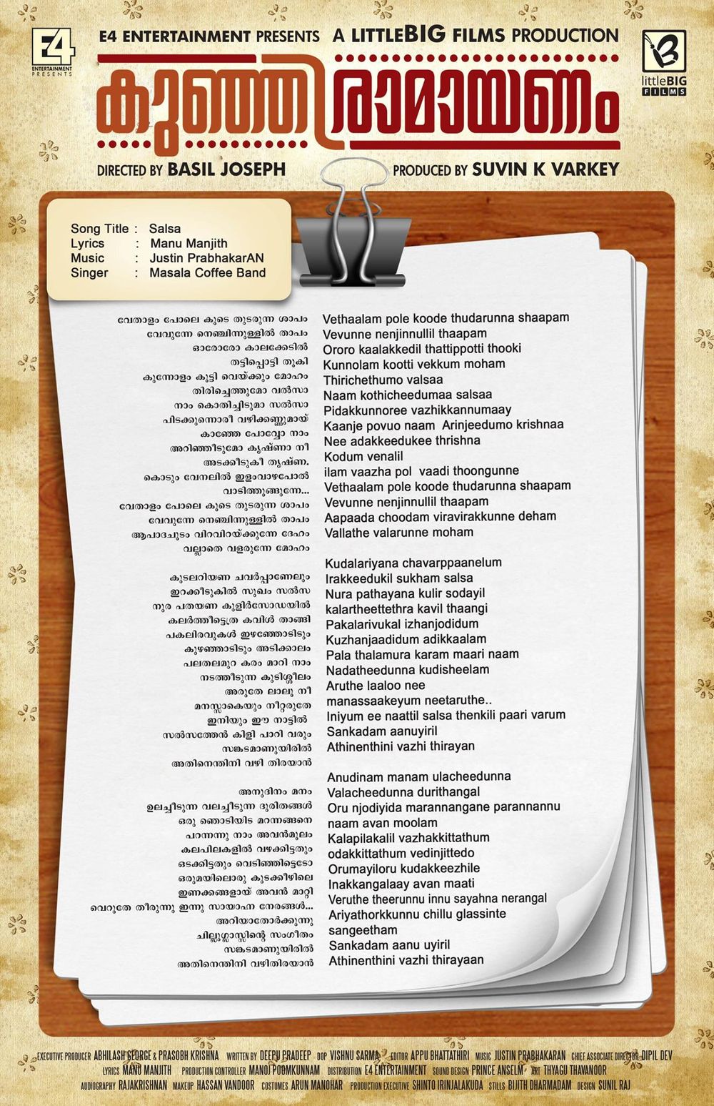 Crew: Basil Joseph (Director), Vishnu Sharma (Director of Photography), Justin Prabhakaran (Music Director), MR Rajakrishnan (Audiographer)