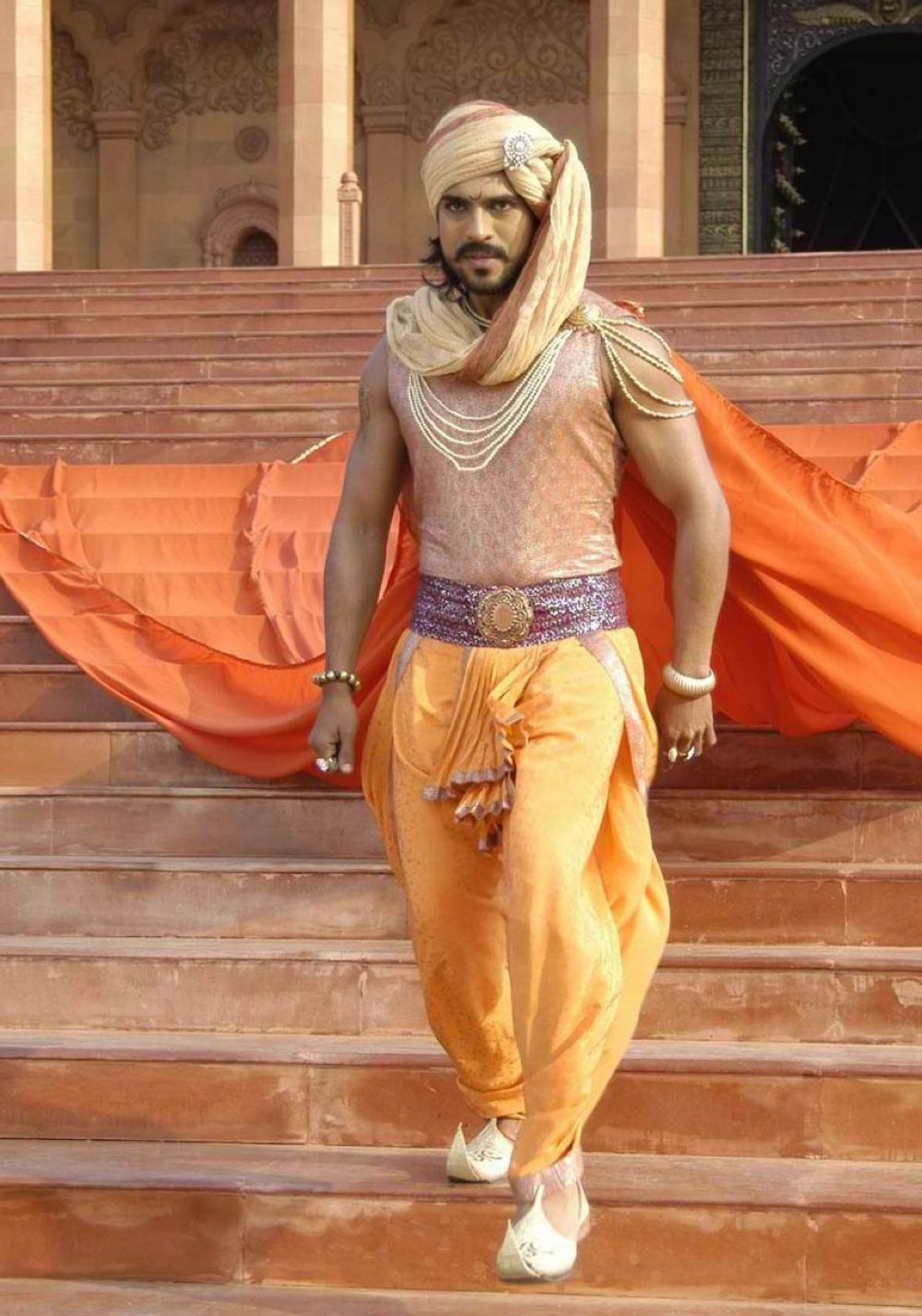 Lead actor Ram Charan is the son of Chiranjeevi, who makes a cameo appearance in the song "Bangaru Kodipetta".
