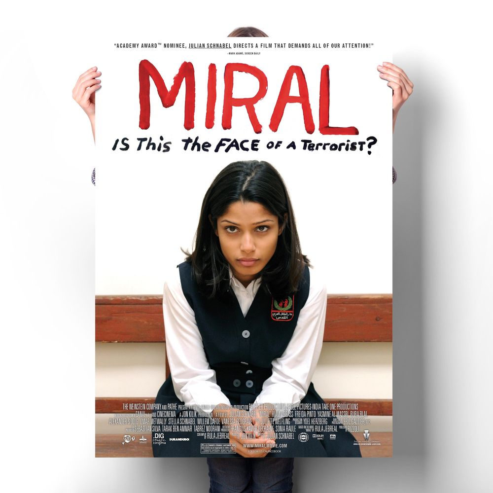 At the age of 7, Miral is sent to the Institute by her father following her mother's death. Brought up safely inside the Institute's walls, she is naïve to the troubles that surround her. Then, at the age of 17, she is assigned to teach at a refugee camp where she is awakened to the reality of her people's struggle. When she falls for political activist, Hani, she finds herself torn between the fight for the future of her people and Mama Hind's belief that education is the road to peace.