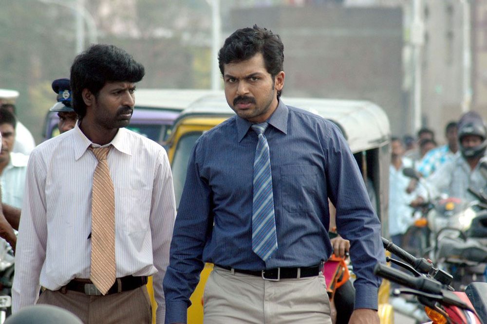 Jeeva (Karthi) is a happy-go-lucky young man looking for a job, not that he is serious about it. He is a fun loving young man, always exuding positivity and is naturally popular in his circle. He has a doting family; dad (Jayaprakash) a call taxi driver, a house wife mother (Lakshmi Ramakrishnan), and a younger sister. Jeeva’s life revolves around his family and friends.