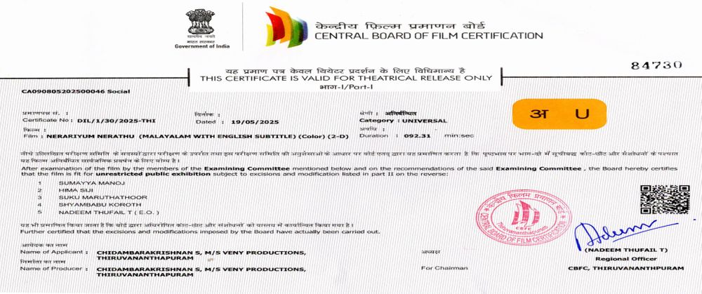 Crew: Renjith Venugopal (Director), Udayan Ambadi (Director of Photography), TS Vishnu (Music Director)