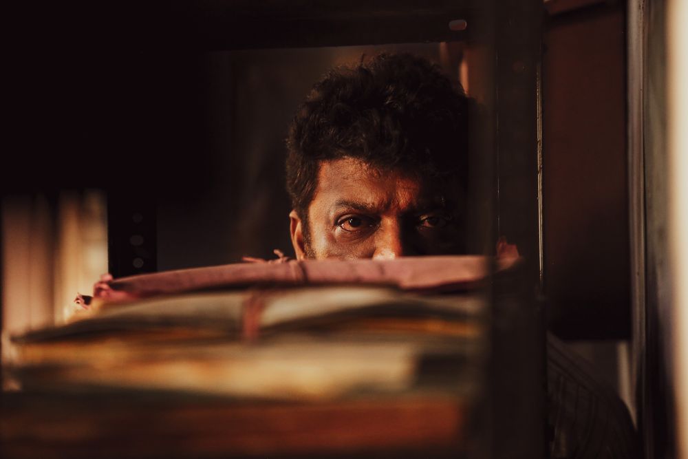 A middle-aged man named Masilamani is being investigated as a murder suspect. While the camera is being fixated only on the man from the start of the investigation, he is observed taking oath of silence, refraining from even food or water till the evening. Masilamani reveals that his 9-year-old son Mahesh suffers from a disease which gives him only another 5-6 years to live and hence he takes such oaths regularly, praying for his son’s long life. The boy is waiting outside the investigation room. He asks them to tell him that his father is attending a police interview. He also asks them to give his son his tablets and, apply eye drops for him at 11 am. He asks that a female cop does it too, so that it is done with care. Throughout the investigation, Masilamani talks in a non linear fashion, provoked by visual or audio stimuli around the room. At one point, Masilamani admits to having committed the murder. His weapon of choice was the glass dust rubbed string of a kite. He tells them that his son loves kites very much but that he loves his son even more. And after his son leaves him, he will end his life too, he tells them. He writes his statement and is about to sign it. The papers fly. When he looks up at the flying papers, he sees ‘Usha’ written on the fan, landing his narration on his biggest stimulus - his wife. Masilamani’s eyes tear up at the memory of her and just when he starts to sign again, he stops and admits to having committed another murder that took place in Madurai, a year ago. The police officers are shocked. They quickly start investigating. Not only does it verify but they also come across another murder that took place in Pondicherry one year ago and connect it back to Masilamani. All 3 murders have been committed in the same manner. The 3 murders are connected by the fact that aseze 7 shoe is lying around and Masilamani doesn't wear a size 7 shoe. Masilamani reveals that his wife had gone missing. They start digging into her dissapearance and find an abandoned corpse at the GH morgue. He doesn’t even look at it but nods that it is her. Confused, the cops ask him about it and he reveals that he had no clue about her death but only tells them that she wore a green saree similar to what was shown in the photograph. Masilamani is a security guard at a popular sports and recreation club. His family got him married to Usha, a beautiful girl from his village. Living in the club premesis, they have a son within 8 months of marriage being born with a life-threatening condition. Upon seeing the women at the club with their fancy lifestyle and jewellery, Usha begins to develop a liking for the luxurious lifestyle which leads to her going astray. Hearing the rumors about his wife's loose morales, Masilamani confronts her and she convinces him into believing her. Upon learning the truth by himself, Masilamani begins to track down his wife's illegitimate lovers and begins to murder them one-by-one. Upon observing his behavior, the psychiatrist reveals to the police that he has a nurturing motherly side to him as well. Masilamani reveals that he may or may not have commited the crimes like the original murder, and the police realize that though he is soft he is also shrewd enough to find the loopholes and get away with the crime. Without solid evidence and having to not end the life of a man who has a diseased son, Masilamani is released on Humanitarian grounds. As they walk away, he tells Mahesh that his mother has gone out of town on work, but as