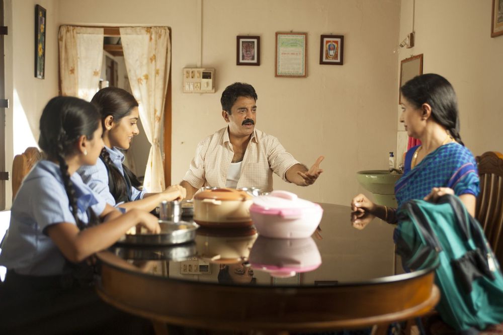 The trailer had this 'family-oriented vibe' to the proceedings, something Kamal had not done in a while. A nice change of pace as well. The movie starts slowly, and soon I realized how 'Earthed' the movie was; the characters had this positive vibe and the direction was always on-the-dot for exposing character traits early on. It took its time and it was handled really well without ever being boring.