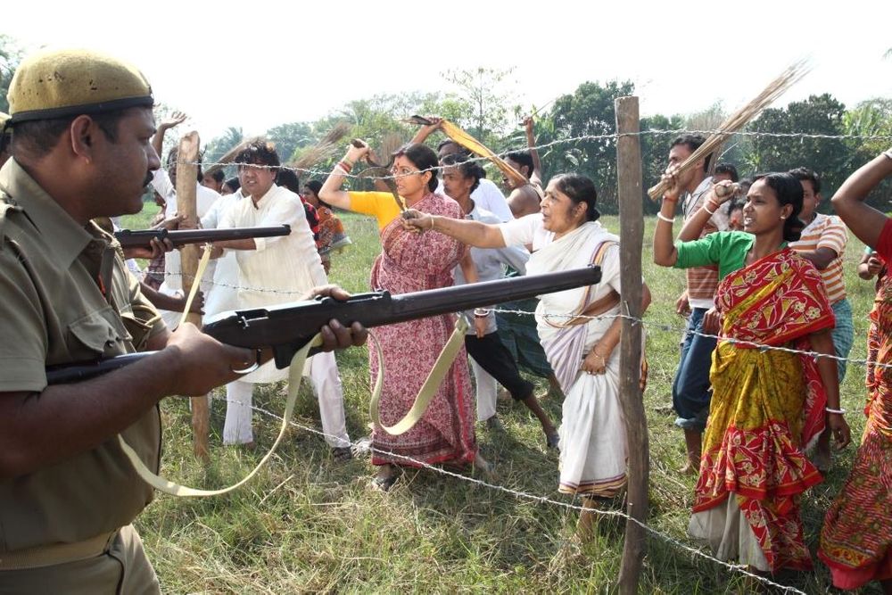Here starts the confrontation between life and livelihood. The unwillingness of the villagers to give up their land leads to mass destruction and gruesome killings in the village. Civil War thus rages across Shantigram for control of the cultivated land so that it can be turned over to industrialists.