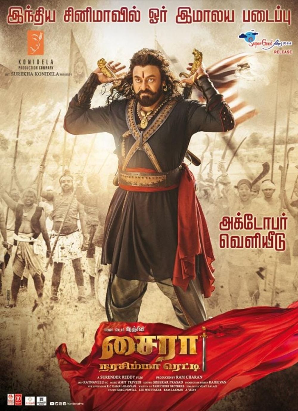 Cast: Amitabh Bachchan, Jagapati Babu, Kiccha Sudeep, Konidela Chiranjeevi, Nayanthara Kurian, Tamannaah Bhatia, Vijay Sethupathi
