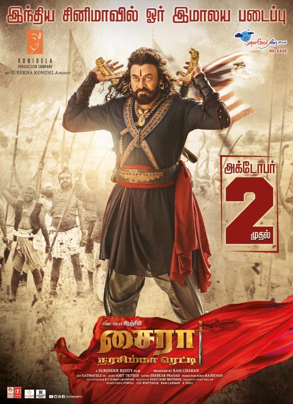 Cast: Amitabh Bachchan, Jagapati Babu, Kiccha Sudeep, Konidela Chiranjeevi, Nayanthara Kurian, Tamannaah Bhatia, Vijay Sethupathi