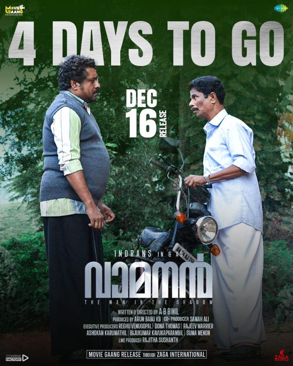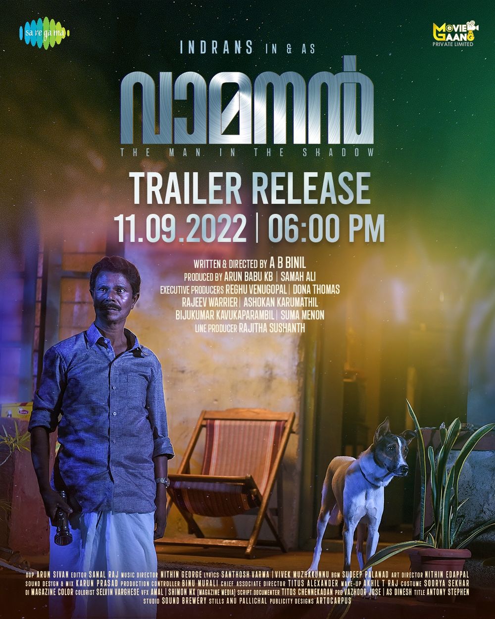 Crew: A B Binil (Director), Arun Sivan (Director of Photography), Nithin George (Music Director), Sudeep Palanad (Music Director)